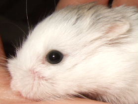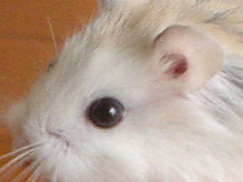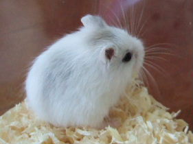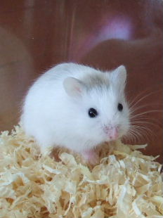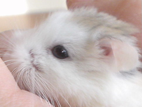 頭部と背中〜腰の辺りにノーマルの毛色が少し残る以外は、ほぼ全身白色のロボ。他にスノーホワイトの名前でも販売しているが、当サイトではショップでの販売名のスーパーホワイト(以降SW)で通す(ジャンガリアンの毛色との混同を避ける為にも)。 |